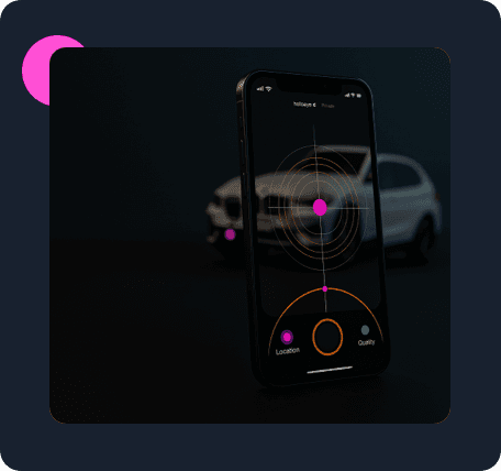 Halo Compass places magenta dots on the metal and guides staff around the car. They walk to the dot, align the rings, and capture close-range photos from any parking spot.